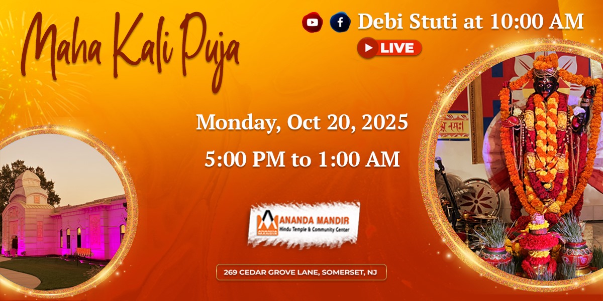 Ananda Mandir warmly invites you to join us in celebrating Durga Puja 2024, a time of joy, devotion, and cultural richness. Durga Puja is one of the most revered and awaited Hindu festivals, and this year’s Durga Puja celebrations promise to be even more special. With vibrant rituals, traditional music, and delicious prasad, all in honor of Goddess Durga, we welcome you to be part of this sacred occasion. Whether you are a long-time devotee or a newcomer, Durga Puja at Ananda Mandir will fill your heart with joy and devotion.