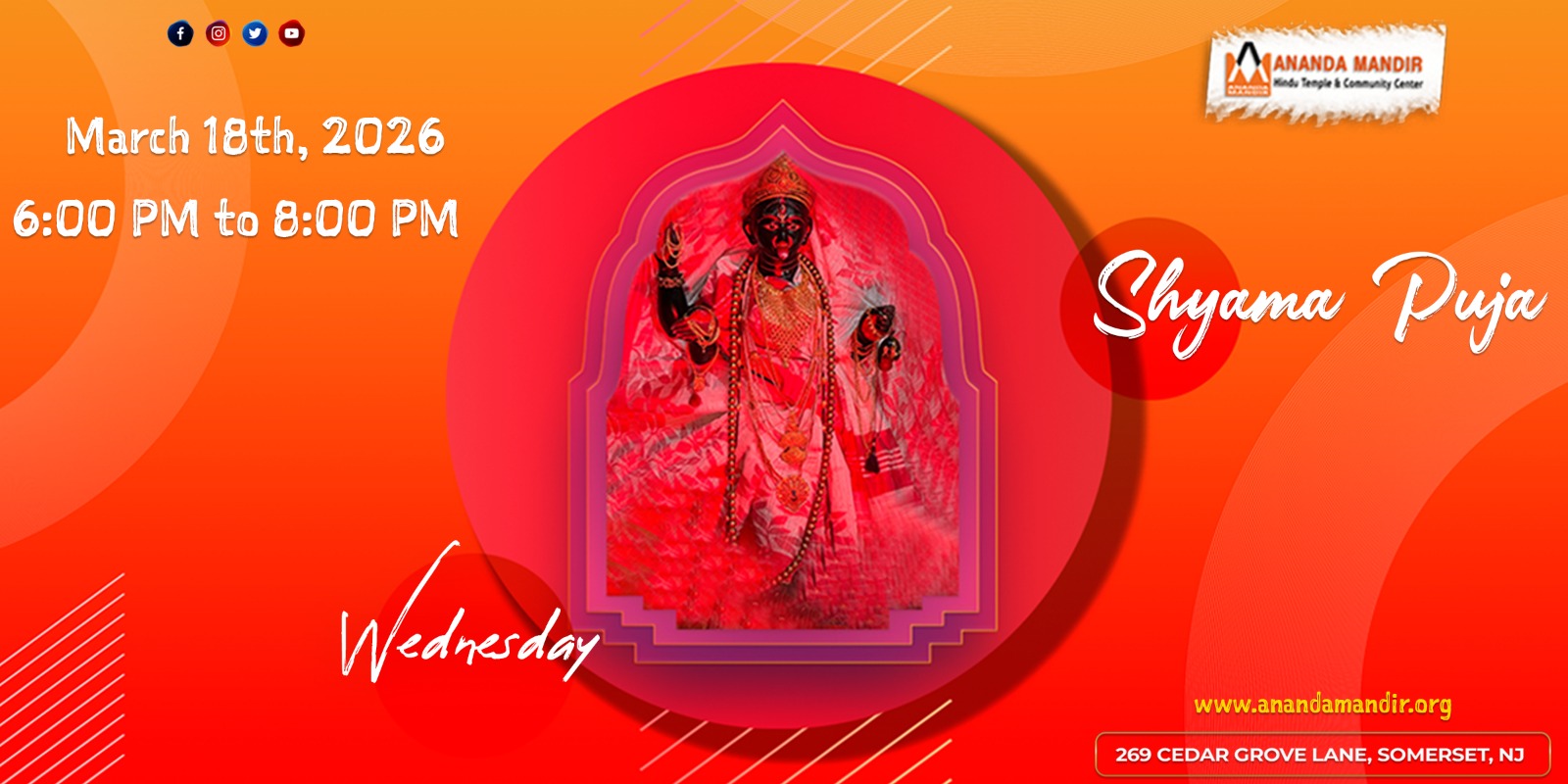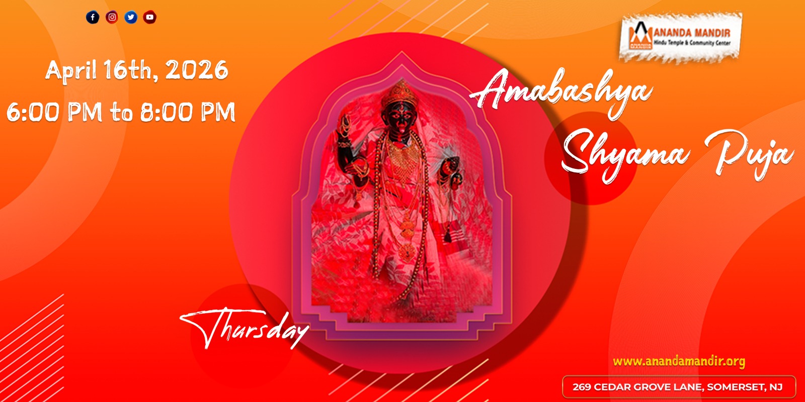 For any questions or additional information about Durga Puja at Ananda Mandir, please feel free to reach out to us: info@anandamandir.org